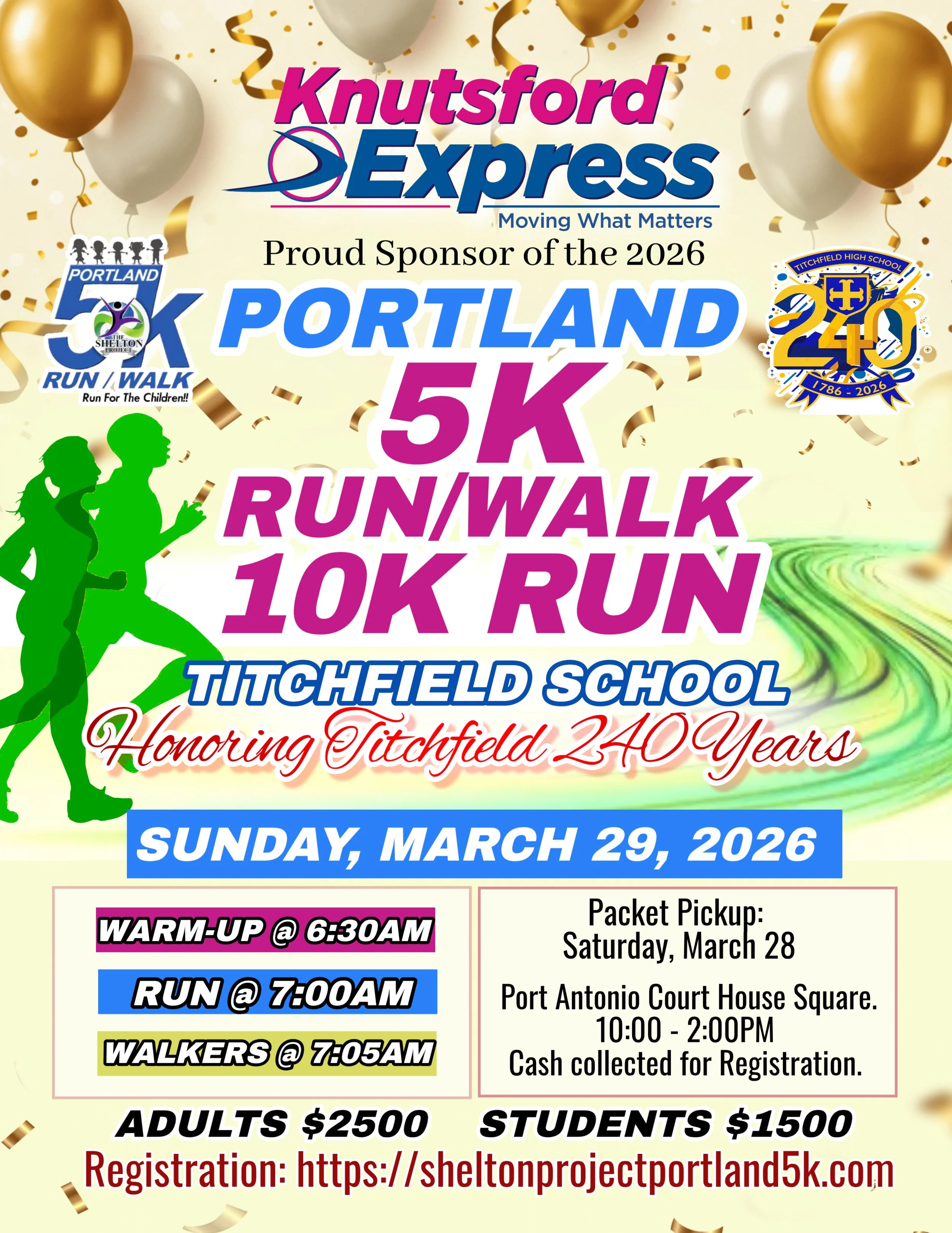 Sign up and join in the fun of the Fifth Shelton Project Portland 5K Run/Walk in beautiful Port Antonio, Jamaica. This event will launch the Homecoming Activities for the 240th Year of Titchfield School.